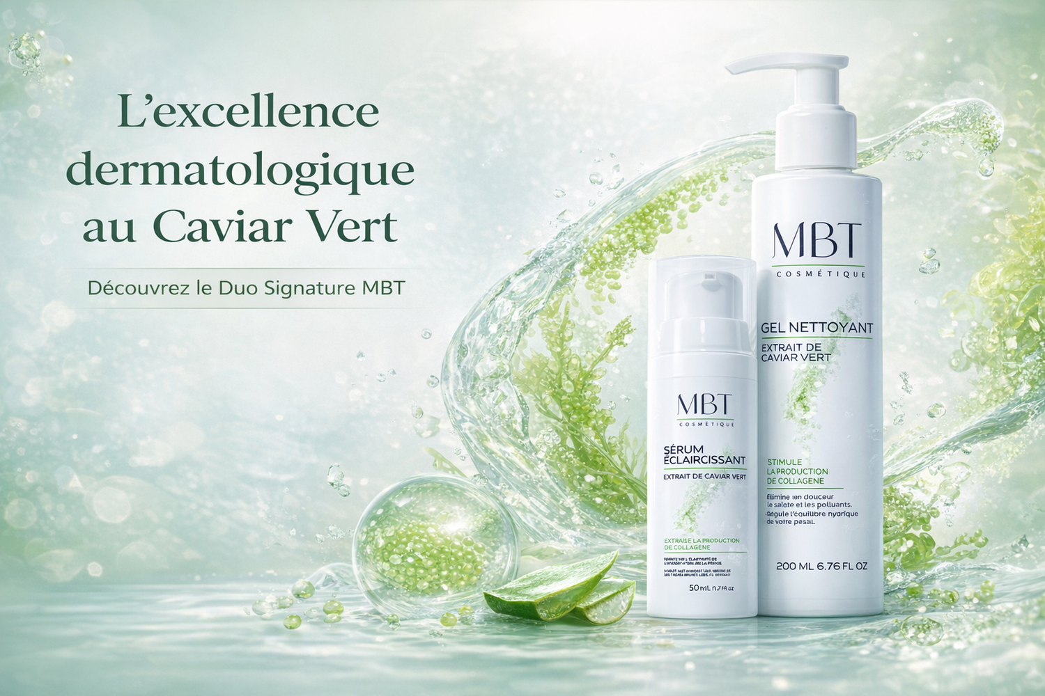 Chez MBT, notre avantage réside dans notre engagement à allier innovation et nature pour créer des produits cosmétiques uniques à base de caviar vert.
